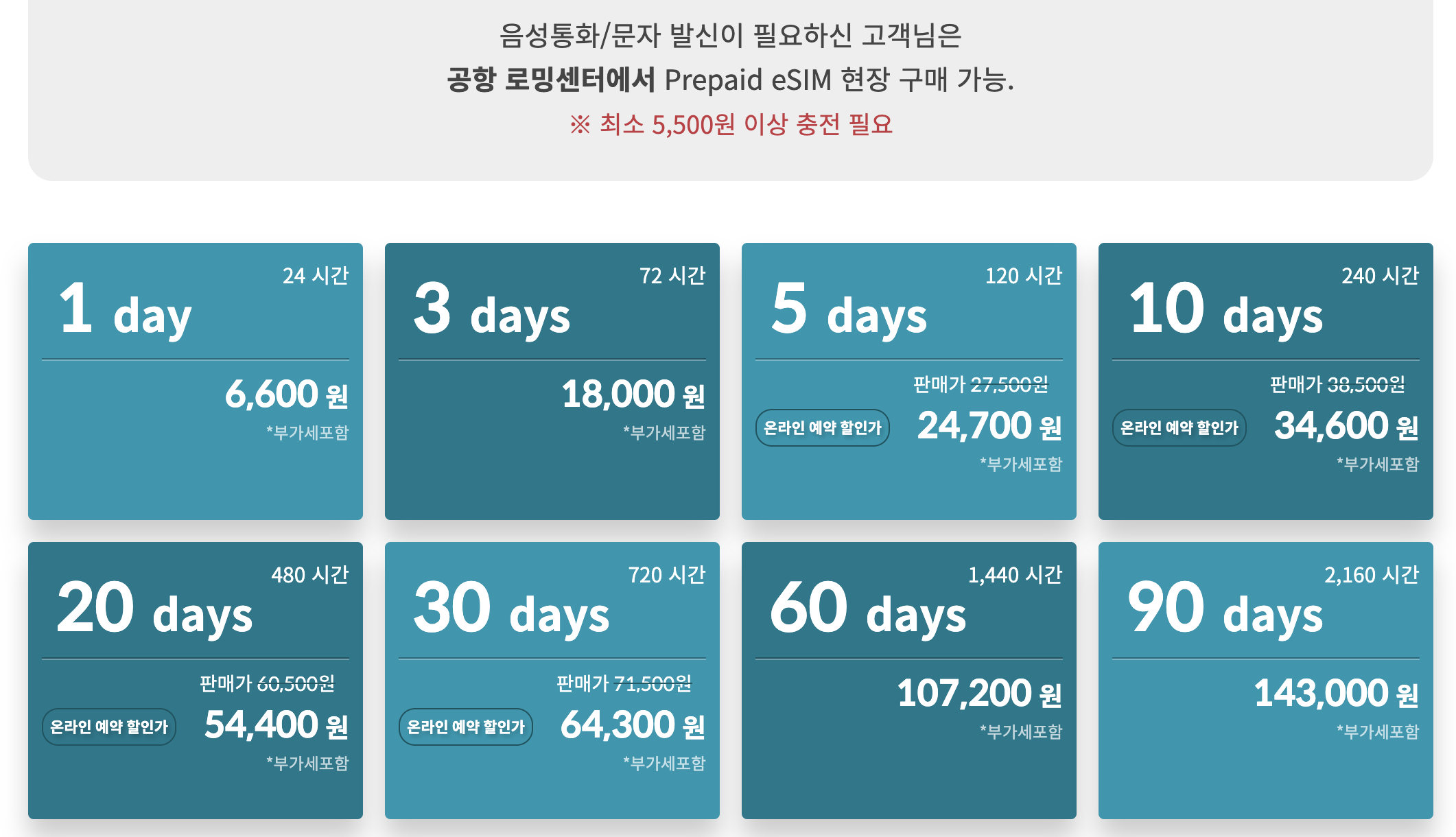- 나처럼 기존 심카드에서 통화를 사용을 할 계획이면 Data전용 esim은 온라인에서 구입이 가능하다. 할인도 된다.