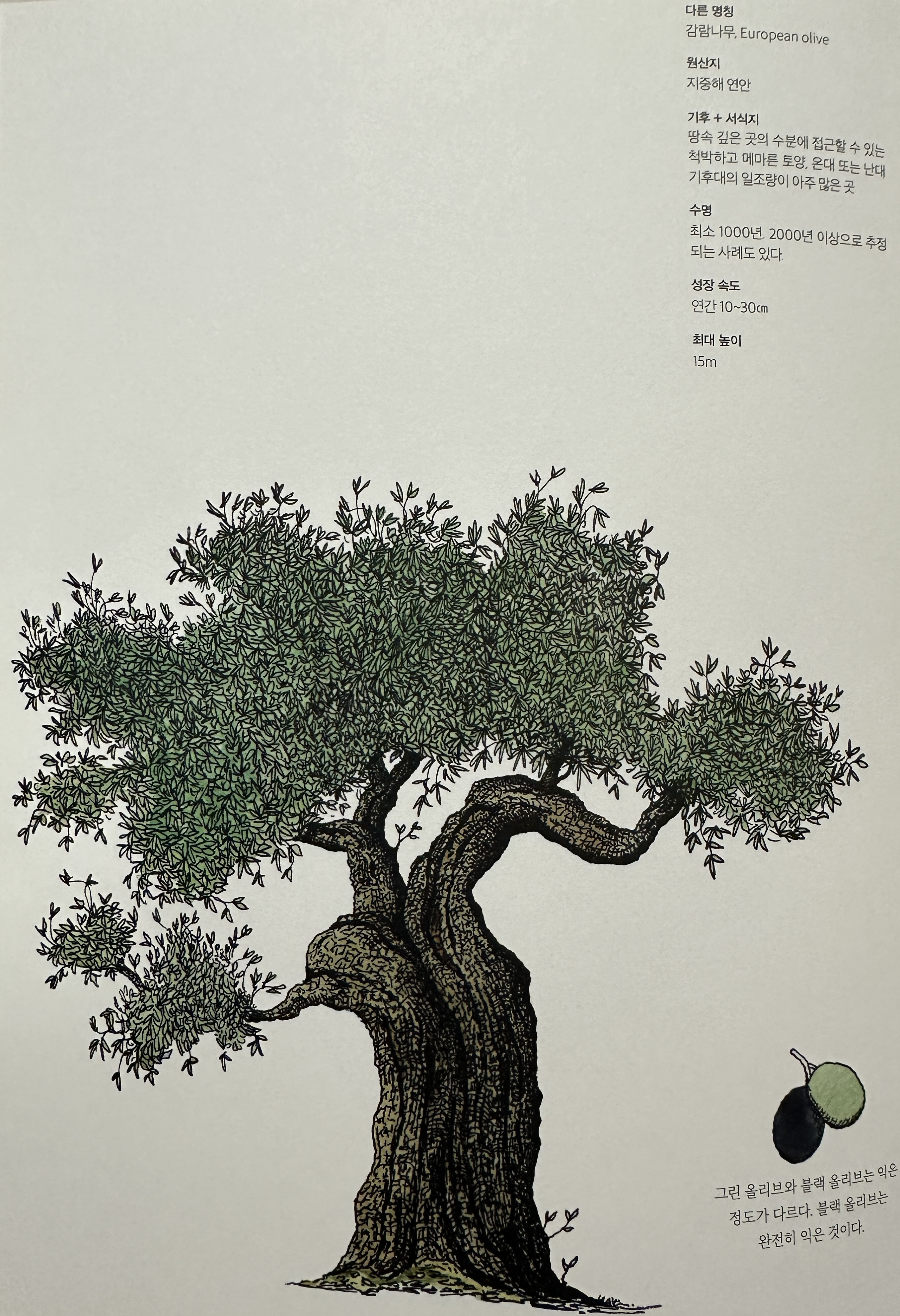 내부 사진은 없다. 그냥 가보면 분위기 있다. 요즘 보고 있는 '나무 이야기' 책에 나온 감람나무 (European Olive)가 때마침 소개되어 있었다. 일단 이렇게 큰 올리브는 아직 본적이 없다.