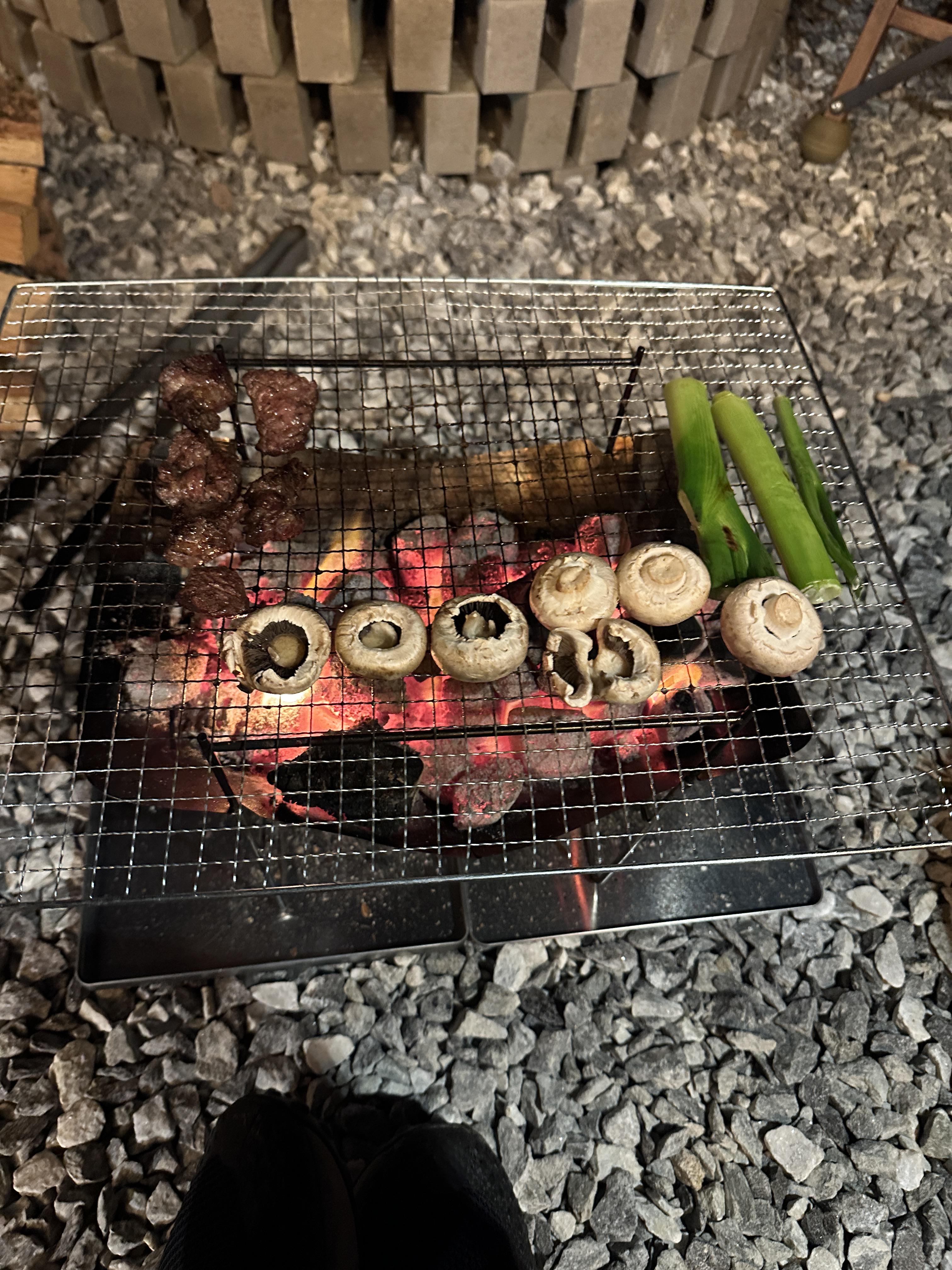 날씨가 추워도 좋고 작은 화로에 고기도 먹고 술도 한잔하는 시간을 보내니 이게 내시간인지 네시간인지