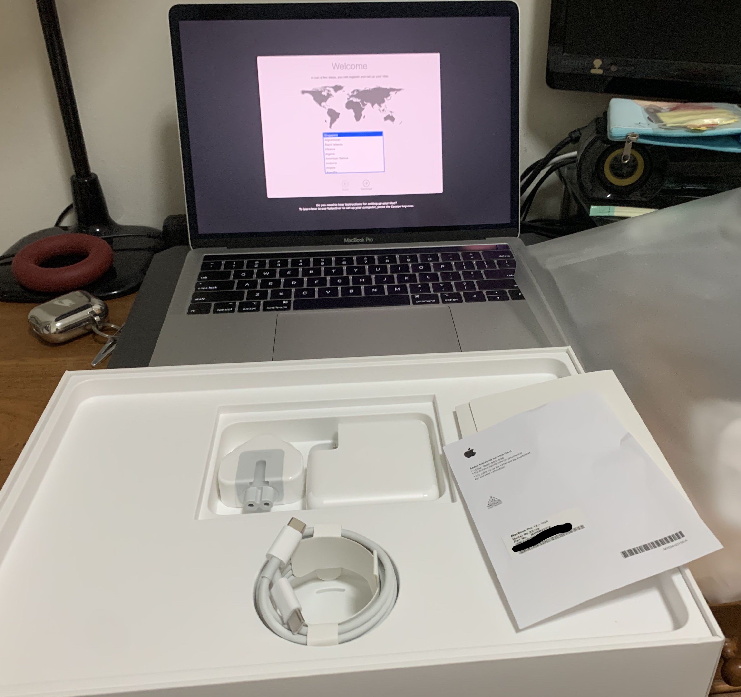 마음 한 구석에 있던 맥북의 로망이 재택근무를 하면서 다시금 떠오르게 되었다. 애플은 비싸다는 생각이 컸는데 요즘 나오는 윈도우 랩탑도 눈이 가는 사양은 비싸기는 마찮가지라 맥북을 사기로 마음을 먹었다. 후반기에 나온다는 맥프로14인치를 구매할 계획이였는데 싱가포르에서 자주 사용하는 한국촌사이트에 맥북프로 2019가 적당한 가격에 올라와서 냉큼 엎어왔다. 가격은 1050달러에 네고를 해주셨다. 같은 콘도에 사시는 분한테 구매하는 행운도 있었다. 꼭 필요하지 않는 걸 살때는 중고를 선호한다. 그만큼 편하게 쓸수 있다. 다만 제품이 케바케라 운이 좀 따라야한다. 나의 맥북은 정말 깨끗한 상태에서 밧데리 사이클도 41정도에 괜찮았다. 다만 모서리에 찍힘이라는 아쉬움이 있지만 중고라 괜찮다.
